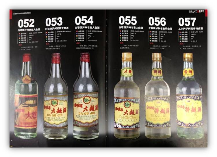 老酒鉴赏杂志中的泸州老窖,从左至右分别是