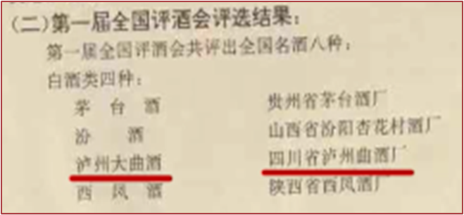 1952年,全中国首次评选四大名酒,当时获奖的四个白酒分别是贵州茅台酒,山西汾酒,陕西西凤酒,以及泸州曲酒厂的泸州老窖大曲酒。
